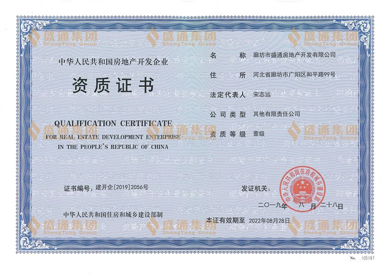 盛通地產(chǎn)取得房地產(chǎn)開發(fā)一級資質(zhì)